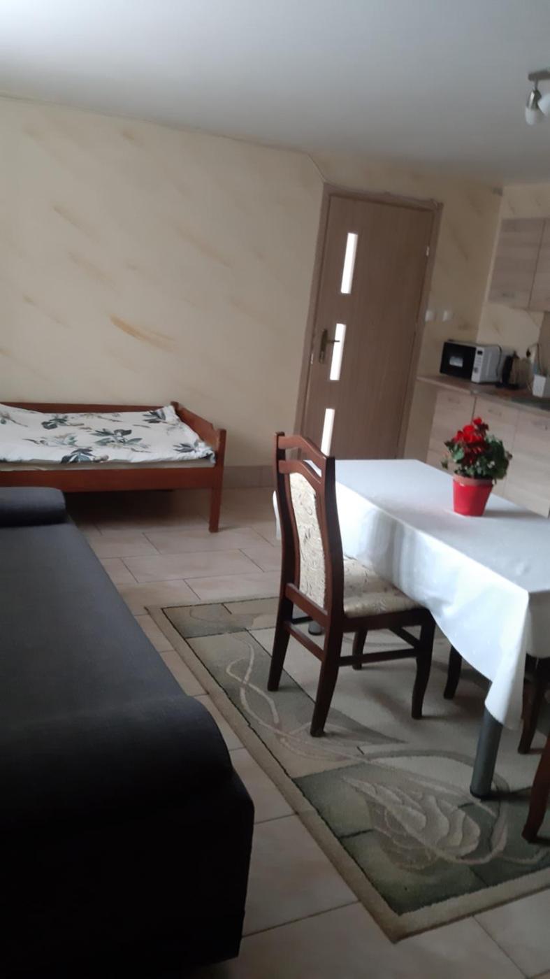 Pokój rodzinny. The family room features a dining area, a wardrobe, as well as a private bathroom boasting a shower and a hairdryer. Guests will find a stovetop, a refrigerator, kitchenware and a microwave in the well-fitted kitchen. The family room also provides guests with a barbecue. Featuring an outdoor dining area, this family room also provides a private entrance, a tea and coffee maker and a flat-screen TV with cable channels. The unit offers 3 beds. Rodzinny - 5 osobowy. Powierzchnia pokoju ok.: 40 mkw.
