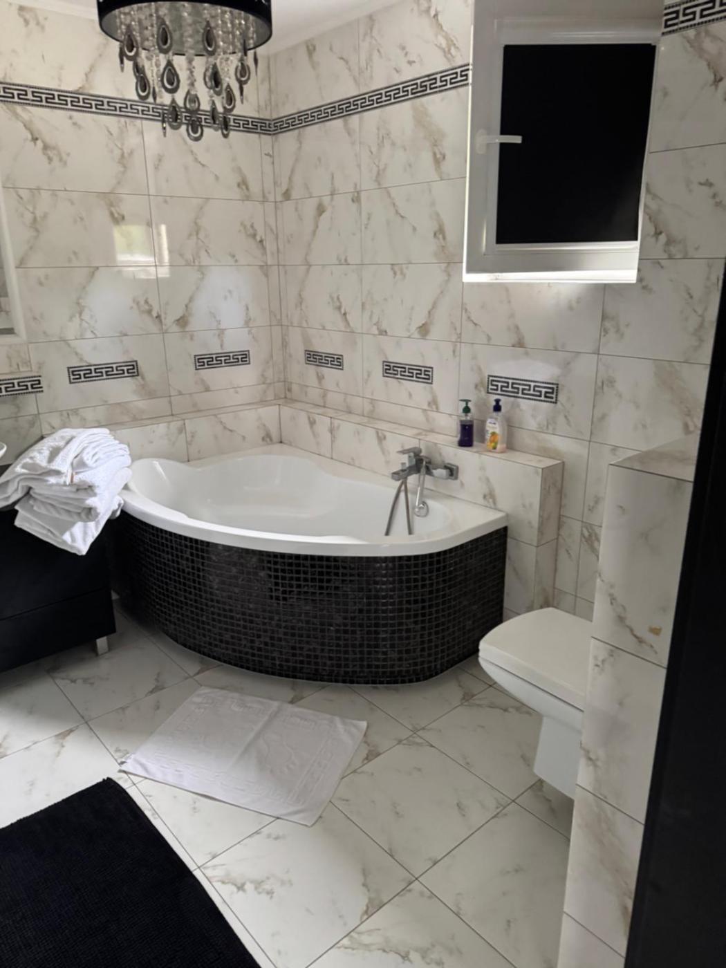Dom z 2 sypialniami. Guests will have a special experience as this holiday home provides a fireplace. Guests will find a stovetop, a refrigerator, a dishwasher and kitchenware in the well-fitted kitchen. The holiday home also has a barbecue. The spacious air-conditioned holiday home offers a flat-screen TV with satellite channels, a washing machine, a private entrance, a coffee machine as well as garden views. The unit offers 4 beds. Dom wakacyjny - 10 osobowy. Powierzchnia pokoju ok.: 200 mkw.