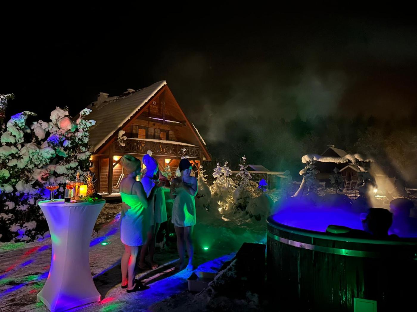 Dom z 2 sypialniami. Jest to dom wakacyjny z sauną, kominkiem i wanną z hydromasażem. Ten dom wakacyjny z oddzielnym wejściem mieści salon, 2 oddzielne sypialnie oraz łazienkę z prysznicem i suszarką do włosów. Udogodnienia obejmują kuchnię z płytą kuchenną, lodówką, zmywarką do naczyń i przyborami kuchennymi. Goście mogą także korzystać ze sprzętu do grillowania. Wyposażenie obejmuje pralkę oraz telewizor z płaskim ekranem i dostępem do serwisów streamingowych. Z tarasu roztacza się widok na ogród. W tej opcji zakwaterowania do dyspozycji gości są 4 łóżka. Dom wakacyjny - 7 osobowy. Powierzchnia pokoju ok.: 54 mkw. ;