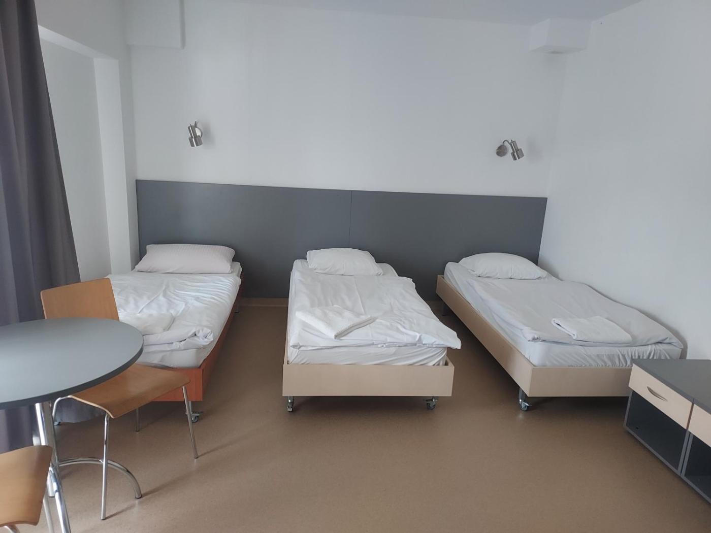 Pokój Trzyosobowy typu Standard. The triple room offers a wardrobe, a carpeted floor, a balcony with city views as well as a private bathroom featuring a walk-in shower. The unit offers 3 beds. Pokój Trzyosobowy - 3 osobowy. Powierzchnia pokoju ok.: 20 mkw. ;